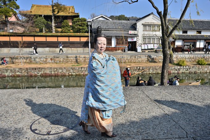 12 131 #倉敷美観地区 #コスプレ #蹴鞠 #いがらしゆみこ美術館 館長で映画 #倉敷物語はちまん の映画総監督 三城誠子さんの 平安コスプレ 蹴鞠はジャストヒットで空高く。 23/01/09 00:33