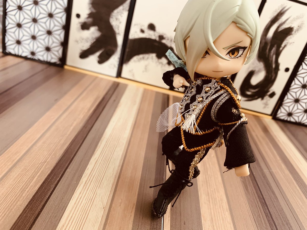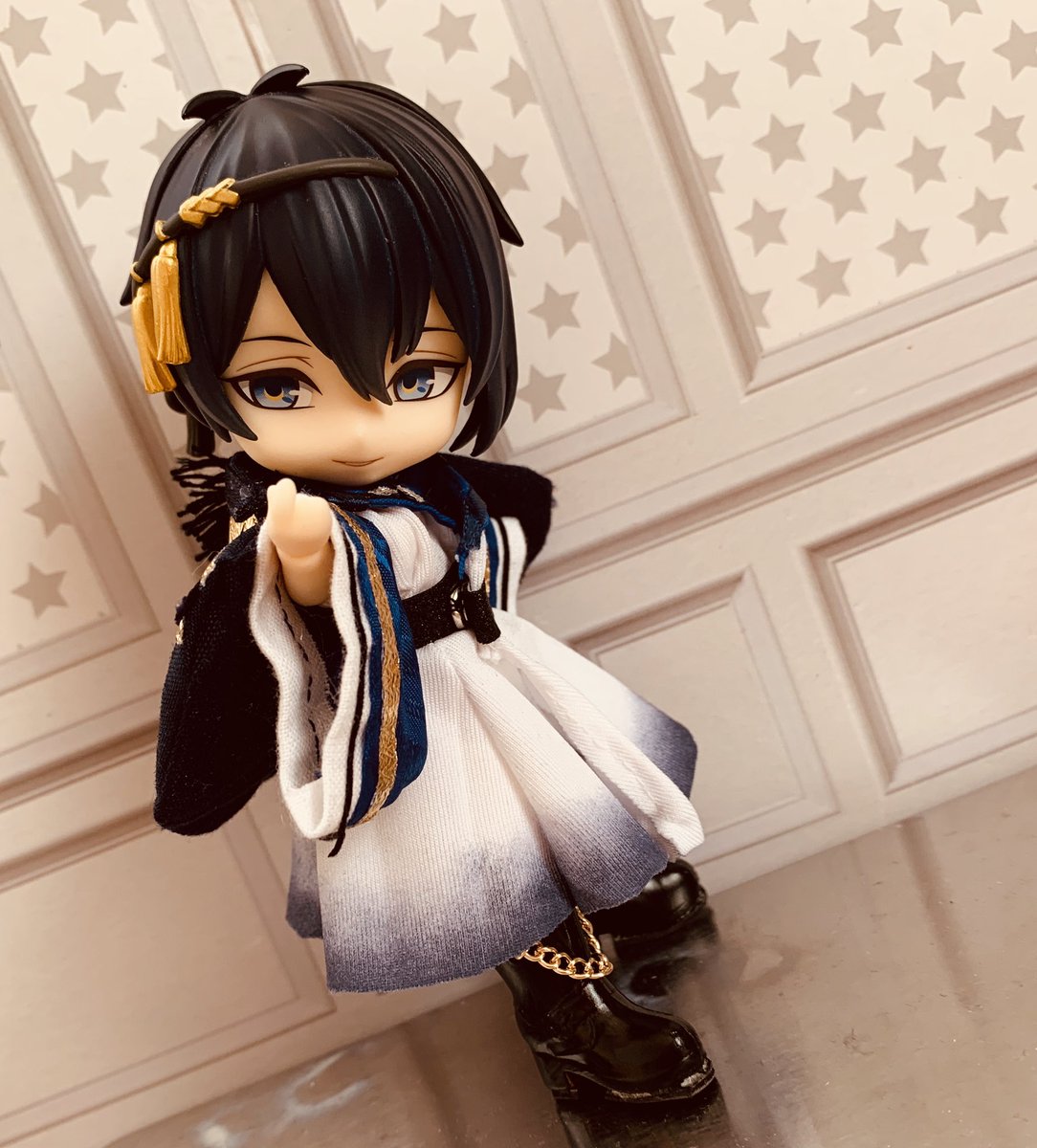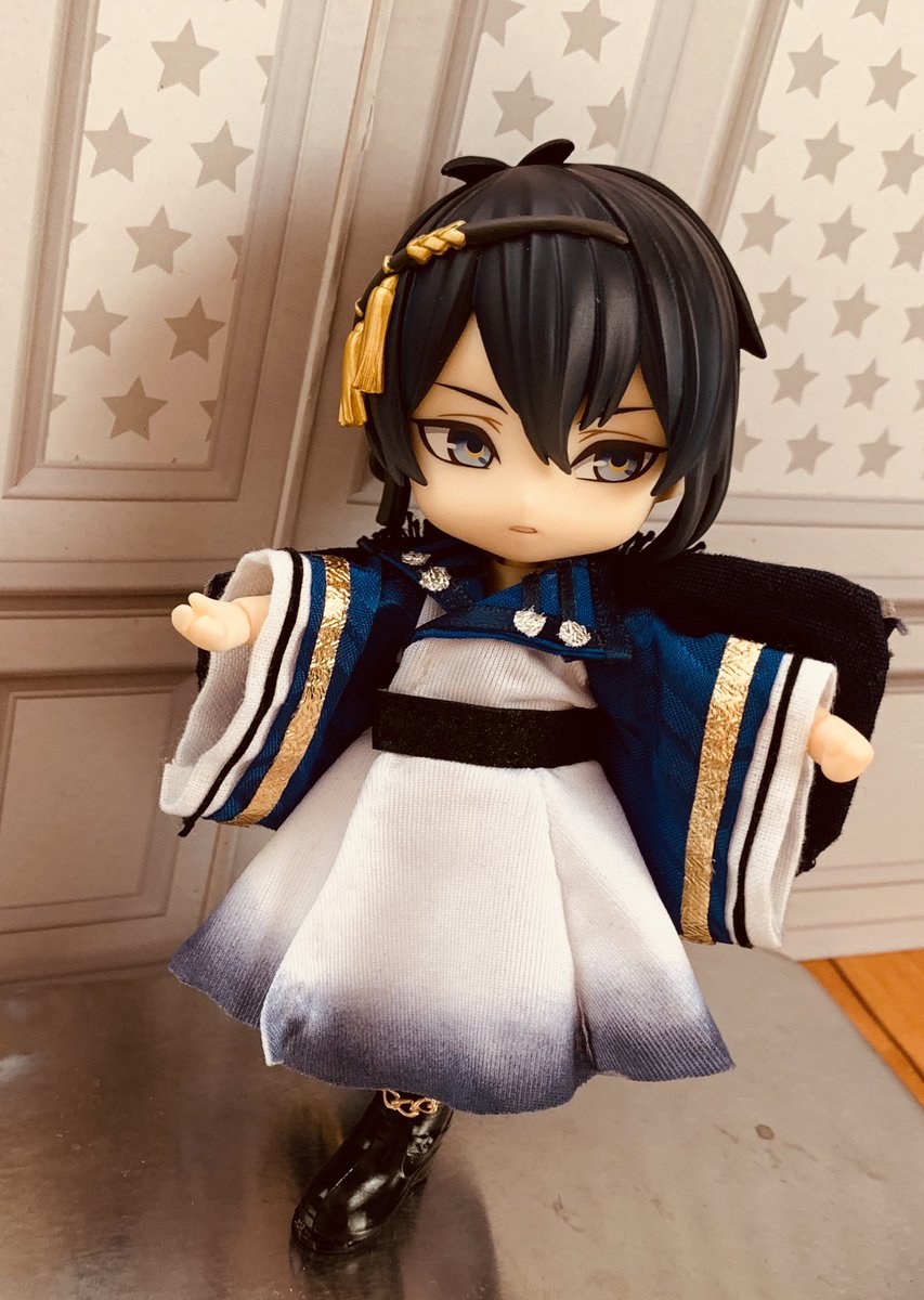 三日月の衣装もできました。 後は小狐丸のみ。 その前に、三日月と鶴の体操着つくりまーすwww で、余裕ある時に爺ちゃんに踊ってもらうぞ。 #ねんどろ刀剣男士 #本丸視察
