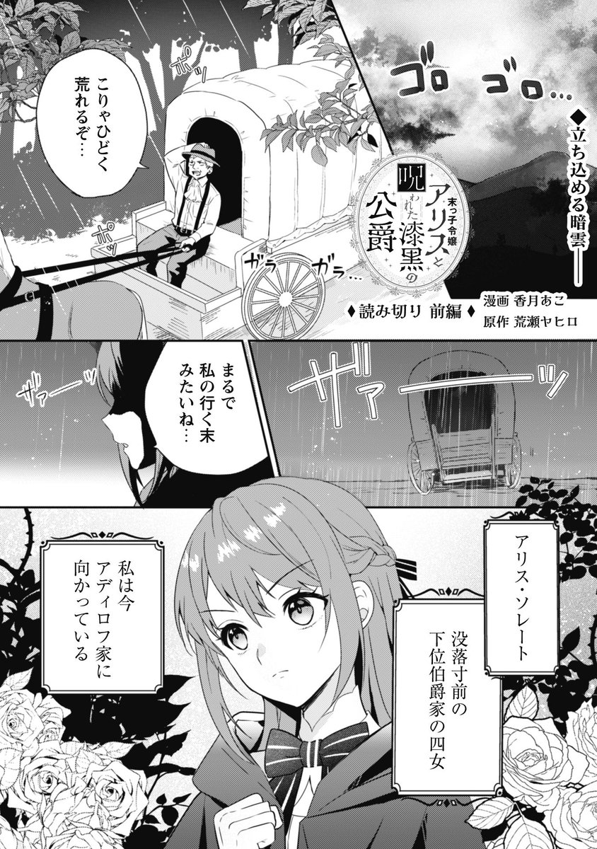 #漫画が読めるハッシュタグ 本日発売の雑誌コミックライドアイビーに掲載の、荒瀬ヤヒロ先生(@araseyahiro816 )原作 #末っ子令嬢アリスと呪われた漆黒の公爵 前編の一部です。 ツリー(5つ)に続く