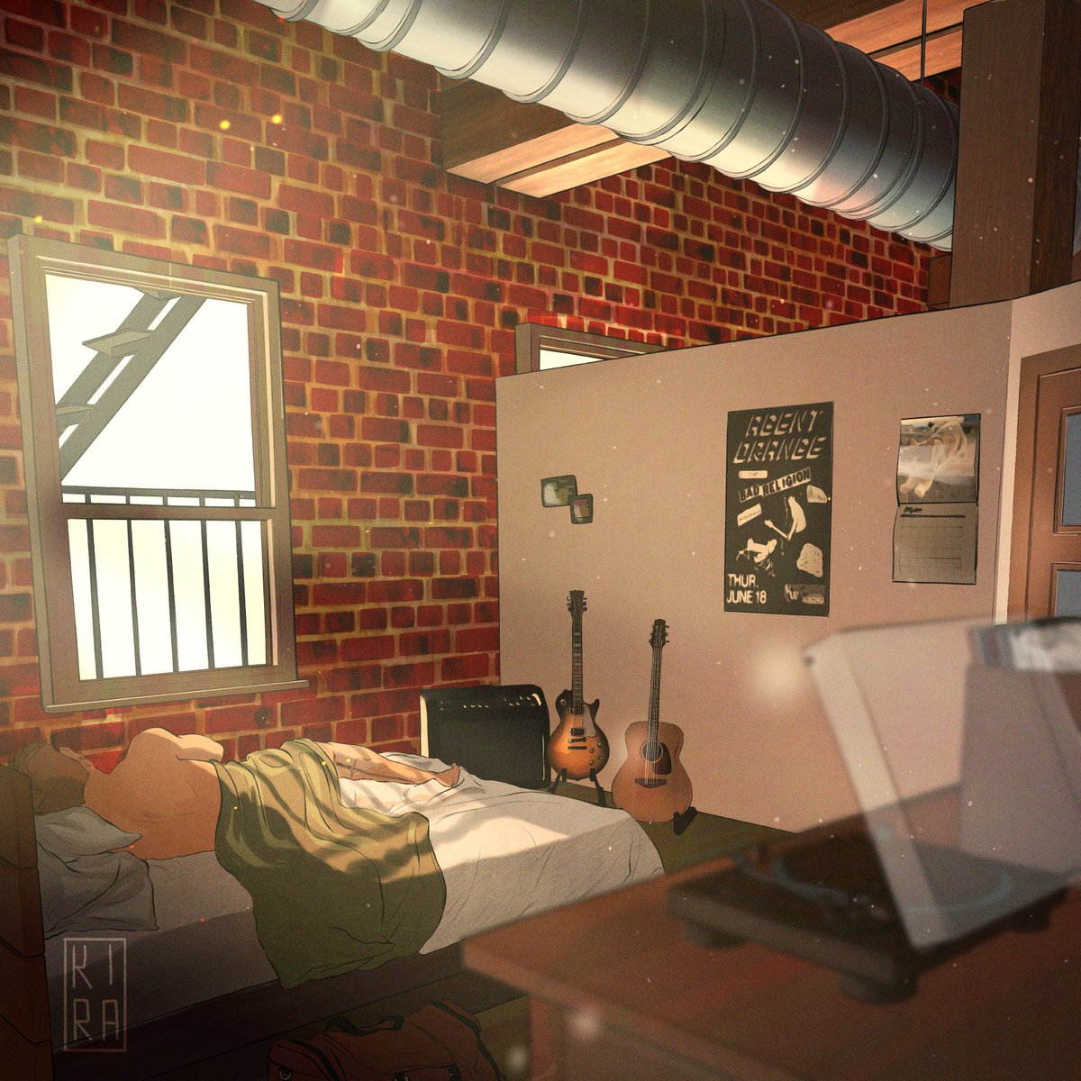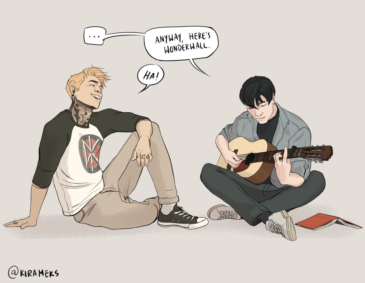 Hey #PortfolioDay, I'm Kira. I'm a comic artist working on a tragic romance about coming of age in the late aughts, falling in love with your bandmate when every part of you knows you shouldn't, and trying to survive overwhelming grief. It's gonna be a bummer! :)