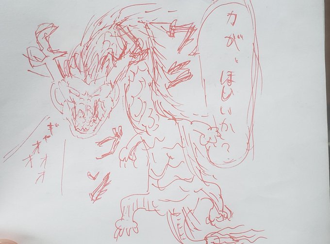 【公式投稿②】 #声プラ夏のキャラボイス2022 #イラスト #双校 ワニゴン シュレイドが幼い頃にいた山の湖に住んでいる主 ギャオオオという鳴き声と 力が欲しいか? という鳴き声の二種類の鳴き声しかない。らしい 佐野さんの約一年越しの最新書き下ろしイラストでの参加 コメントしづらいです。