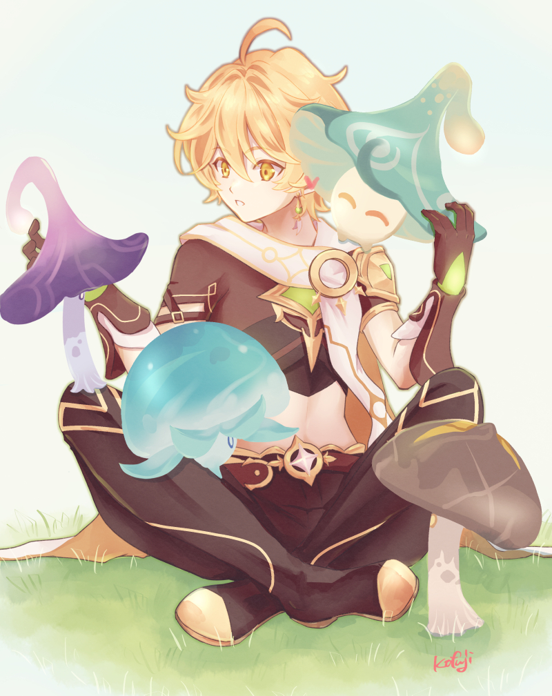 キノコンたちと空君 早く壺にお持ち帰りできるようにならないかな