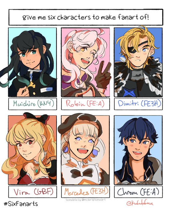 finally finished the #SixFanarts !! It was really refreshing to draw some new faces ^^ thanks to everyone who suggested!