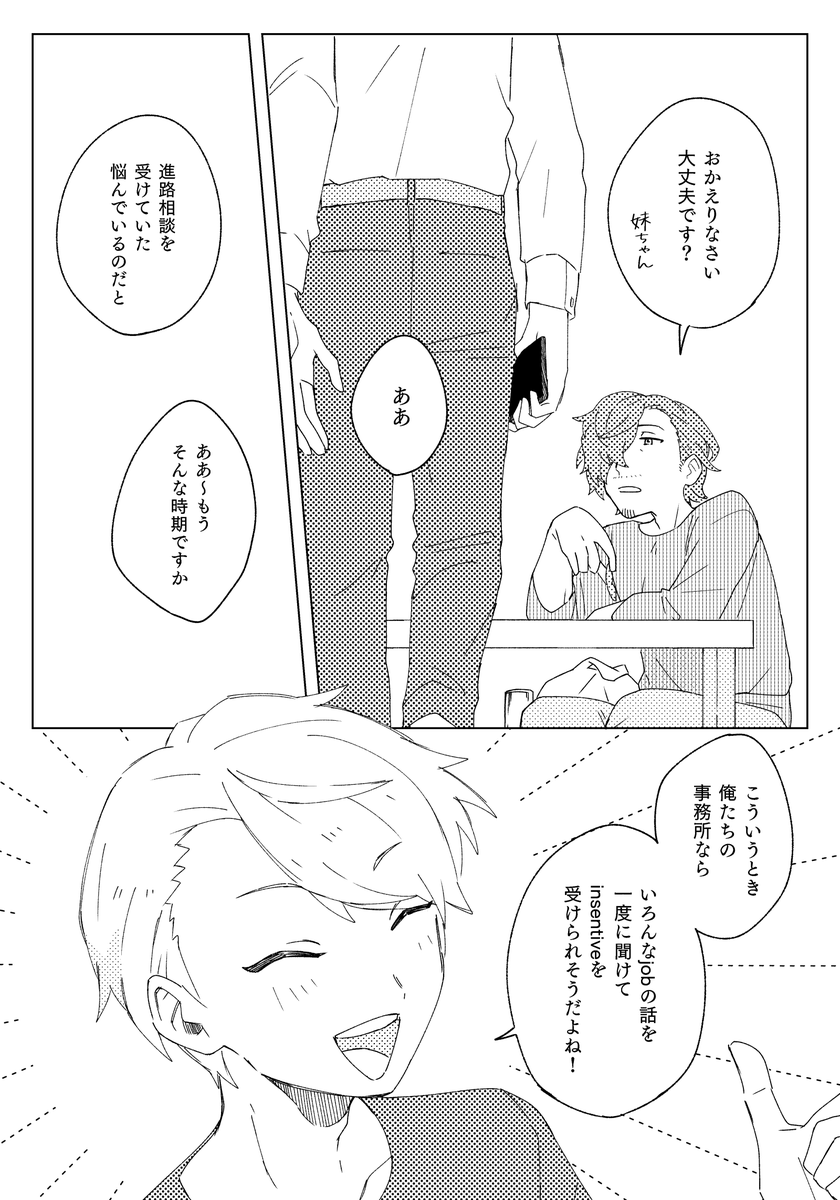 【9/18 ミラフェス27 新刊サンプル(1/2)】 A5/本文28p/400円 (わくわくドキドキセット装丁) シスターはざまメイン漫画です! 自分の進路に疑問を抱いてお兄ちゃんに電話するところから始まります