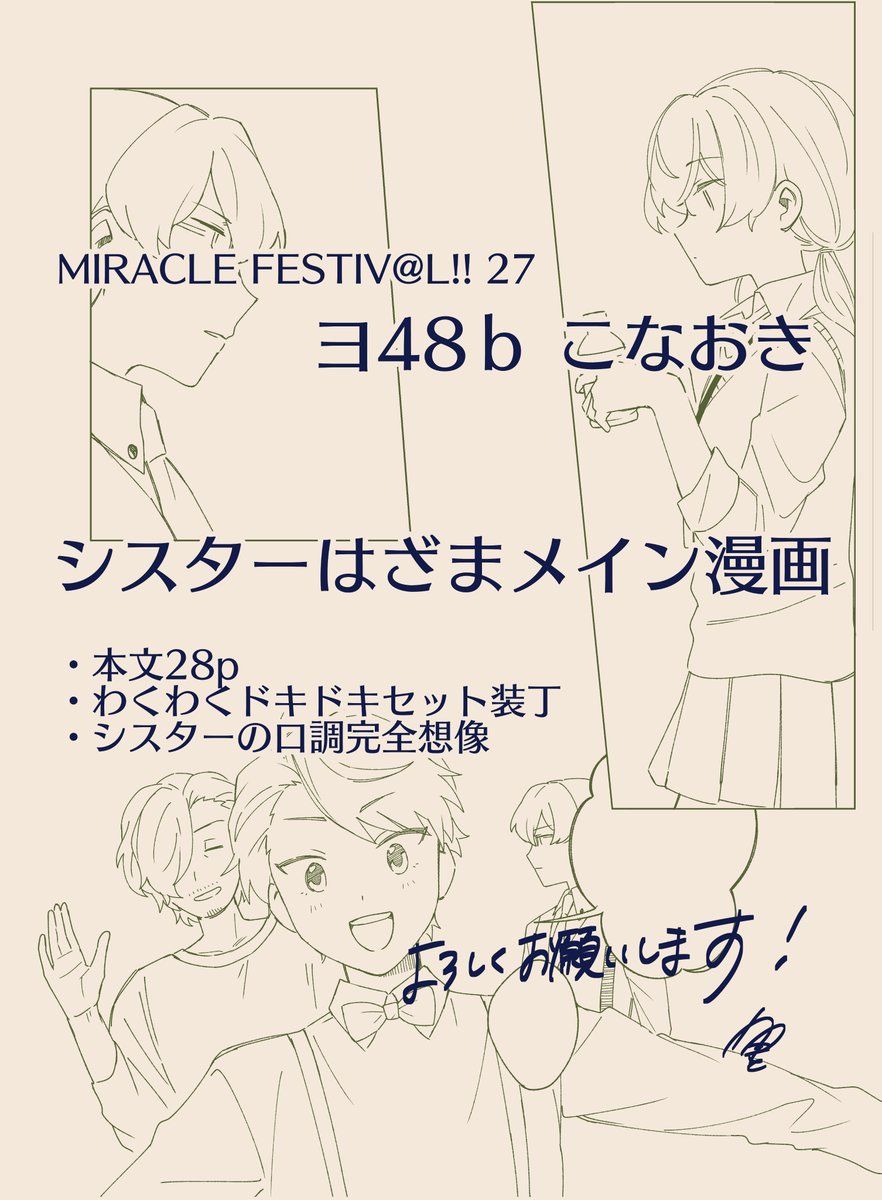 3 31 【9/18 ミラフェス27 新刊サンプル(2/2)】 既刊も少部数ですが持っていきます! 通販は残次第、検討中です。 22/09/10 10:41