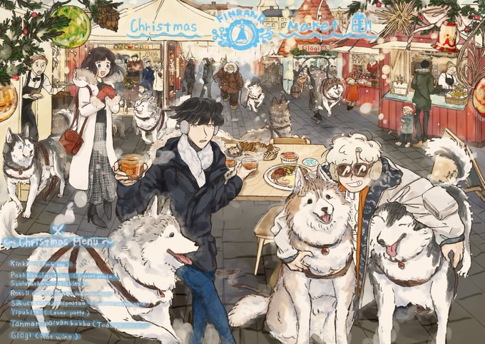 ちょっと色々間延びしちゃって時間かかってしまいました…! 今年も描き初めがクリスマスです!!🎄🍽🎁🎅🛷🐕