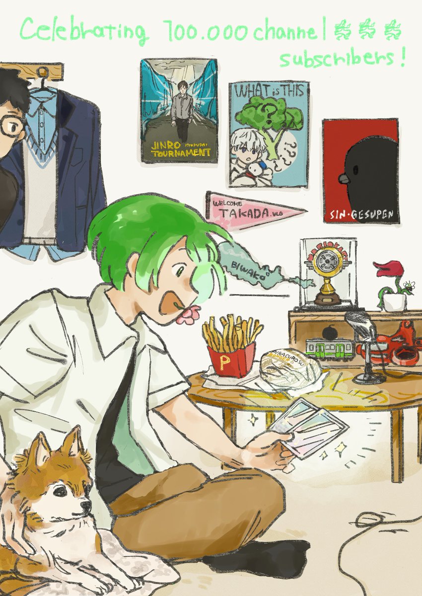 リクエストにお応えしつつ、偶然にもおめでたいタイミングだったのでなな湖さんお祝い絵を描かせていただきました…!! 日頃楽しませてもらっている身なので、ちょこちょこ詰めてるよ〜〜🥫 良いことあってほしいなあということで、ポケカの引きが良いなな湖さん…💐