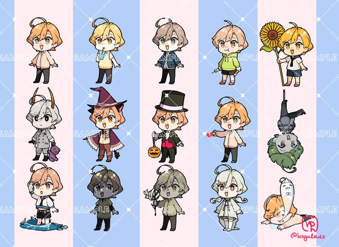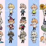 ミニキャラ祭り 背景の色はグラデーションマップで直感で選びました。ほんとグラデーションマップいのち助かるすでに15個くらいいのち助かった #絵描きさんと繫がりたい #秋の創作クラスターフォロー祭り