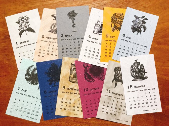 明日のCOMITIA142でも廃盤紙カレンダー2023を引き続き頒布します! もう生産されていない紙で作った名刺サイズのカレンダーです、紙好きの方はぜひ! ね04b「卵一個ぶん」でお待ちしております! #COMITIA #COMITIA142 #COMITIA142お品書き