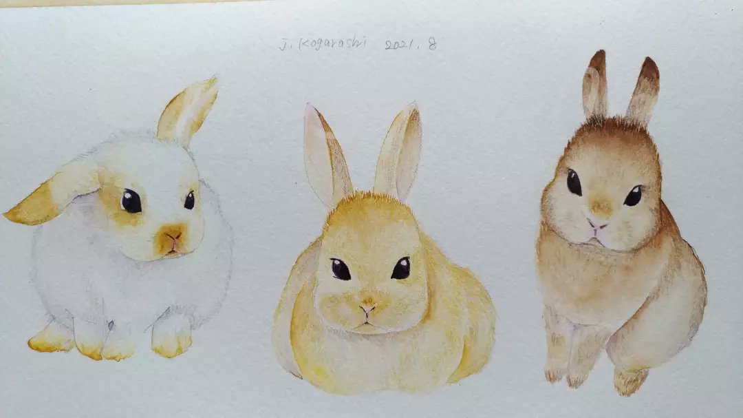 0 11 2021/8 初めてのうさぎさん 難しい! うさぎ好きさんゴメンナサイ😅 #透明水彩 #色鉛筆 #アナログイラスト #うさぎ 21/08/23 13:10