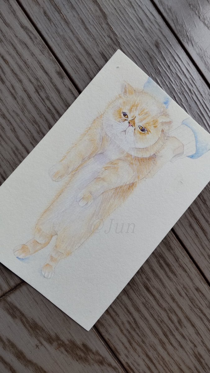 にゃんこにチャレンジ またも難しい格好、フワフワお毛々に悪戦苦闘 ナゼ難しいものに手を出すのか💦 お顔を描くのは楽しかったからヨシとしよう! #透明水彩 #猫イラスト #アナログ絵