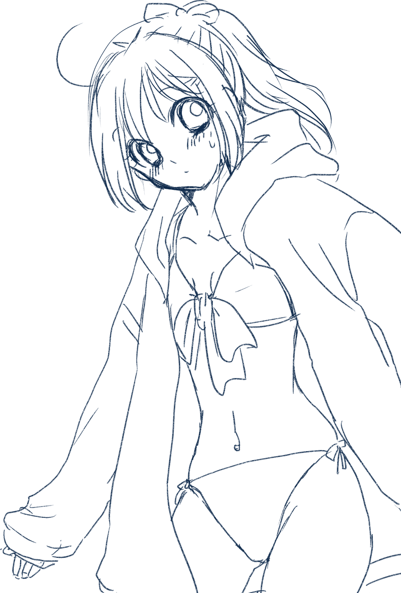 頑張って水着着たのに速攻でパーカー着せられちゃった千鶴ちゃん落書きwww