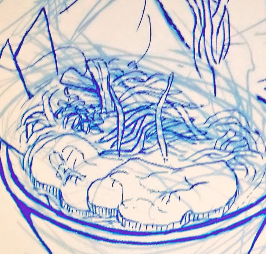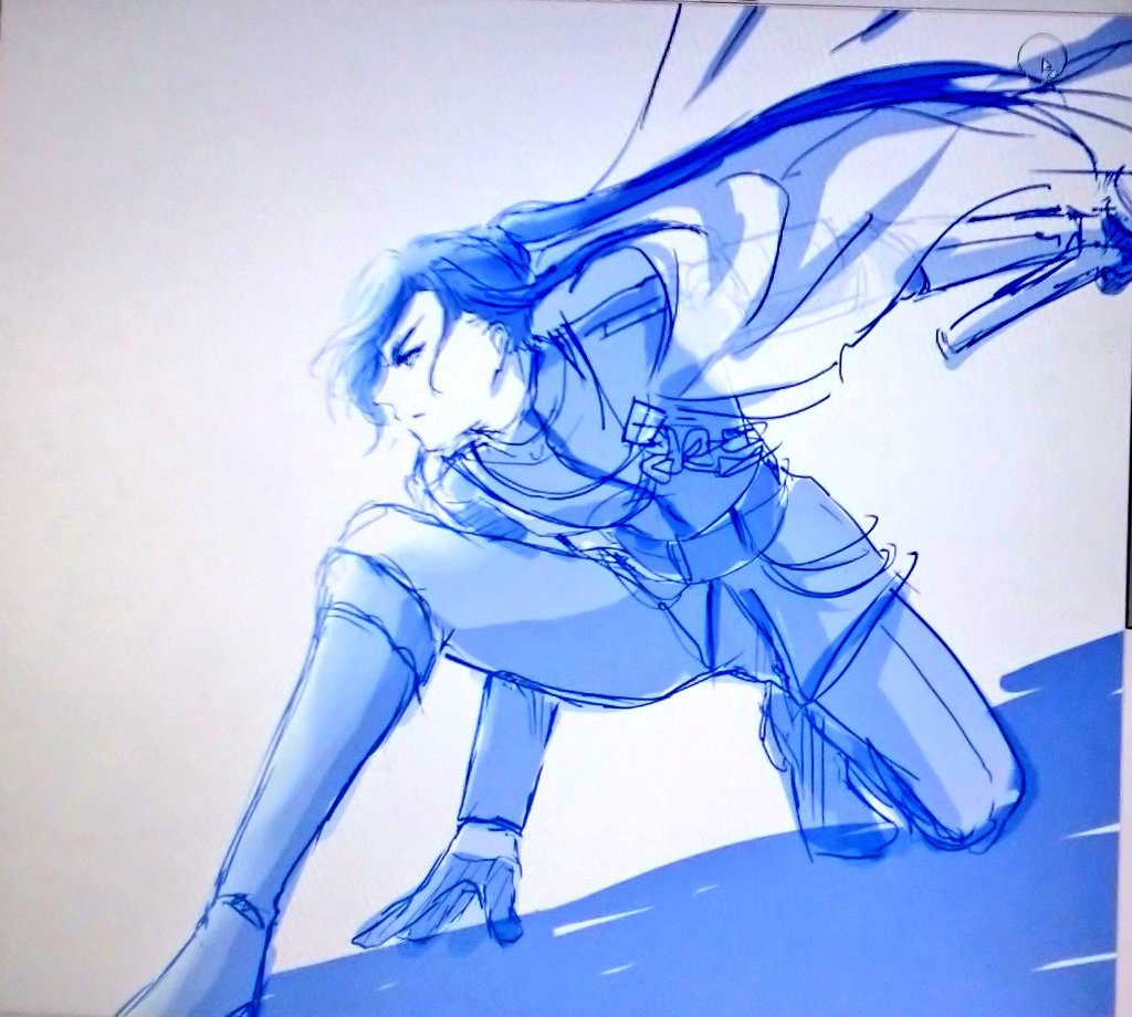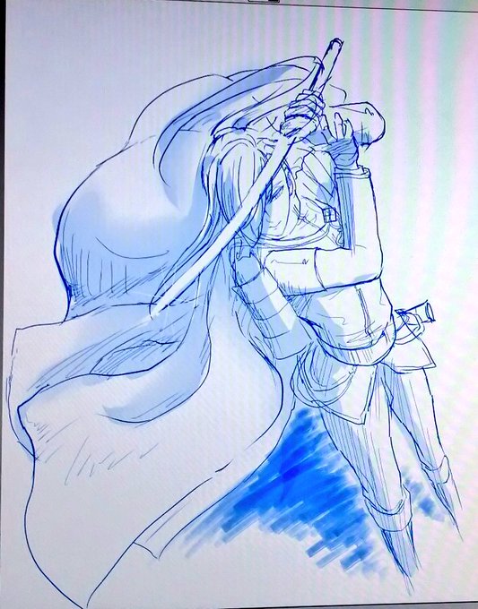 なんかかいたことあるなーと思ったらちょっと前にらくがきしてたひざまるもほぼ同じポーズしてたわ😂永遠に同じもんかいてるけど好きだから仕方ないな。シエさん低く構えてるん好き。 あと推しにら〜めん食べさせたくてかいてた🍜時間とられて人物全然進まんかった、そのうち。