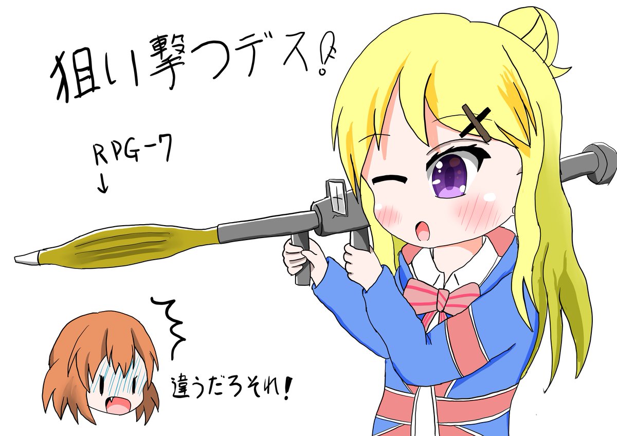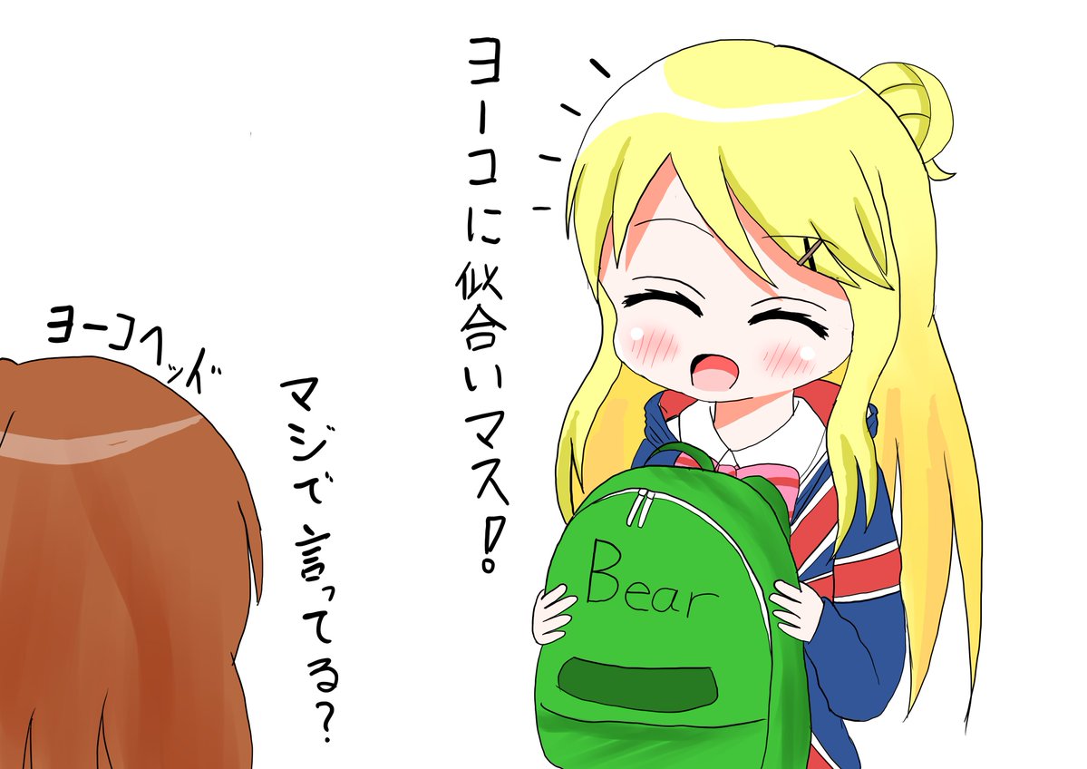 第170回 お題「鞄/バッグ」 修学旅行前の買い出しにてきっとこんなことがあったはず 映画の陽子のバッグに目が言ったのは私だけじゃないはず Bearの存在感が・・・ #きんいろモザイク版深夜のお絵かき60分一本勝負