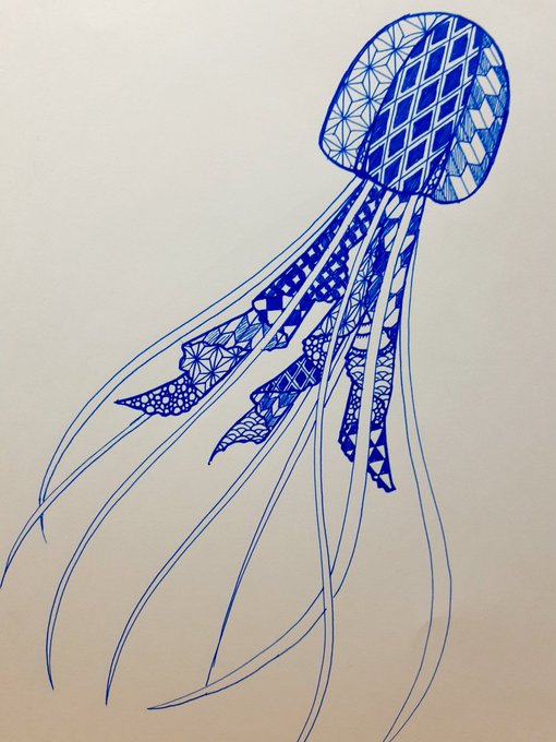 0 2 日本文様クラゲその8 #ペン画 #絵描きさんと繫がりたい #絵描きさんと仲良くなりたい #絵柄が好みっていう人にフォローされたい 23/05/03 18:16