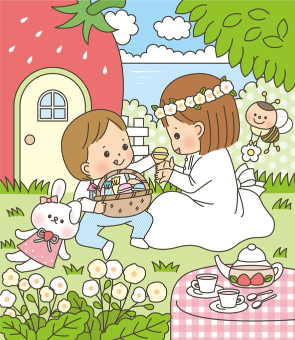 いっしょにあそぼう!まちがいさがし 4月号|マガジン・マガジン さま ‥‥‥‥‥‥ お外でお茶会・・春がきたらやりたいな♡ #イラスト #イラスト好きな人と繋がりたい #イラストレーション #illustration