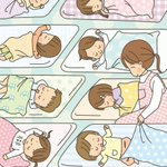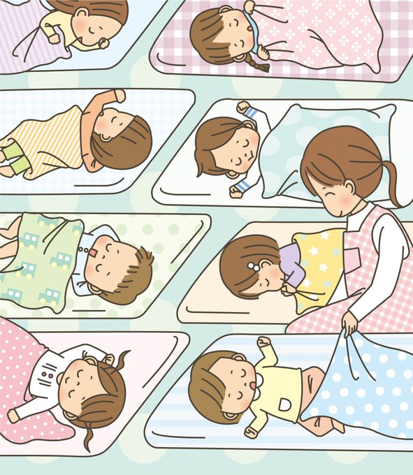 ひらめく!まちがいさがし vol.6|マガジン・マガジン さま ‥‥‥‥‥‥ 懇談の時、3,4人の園児をリズミカルにトントンしている保育士さんの姿がチラリと見えたのを思い出しながら楽しく描かせていただきました☺️ #イラスト #絵描きさんと繋がりたい #イラストレーション #illustration