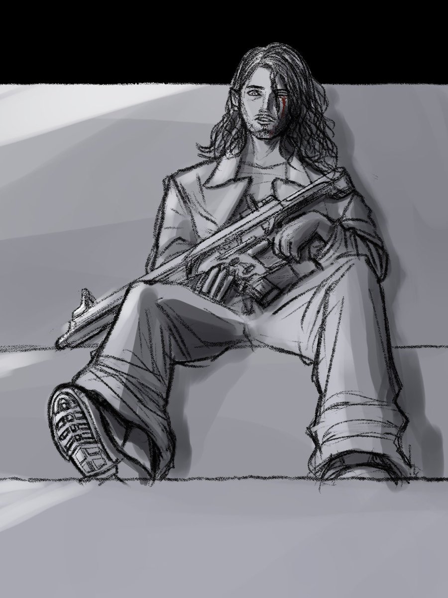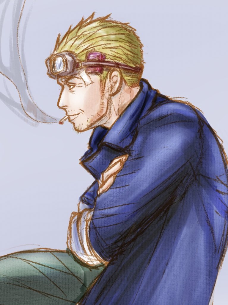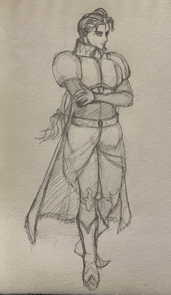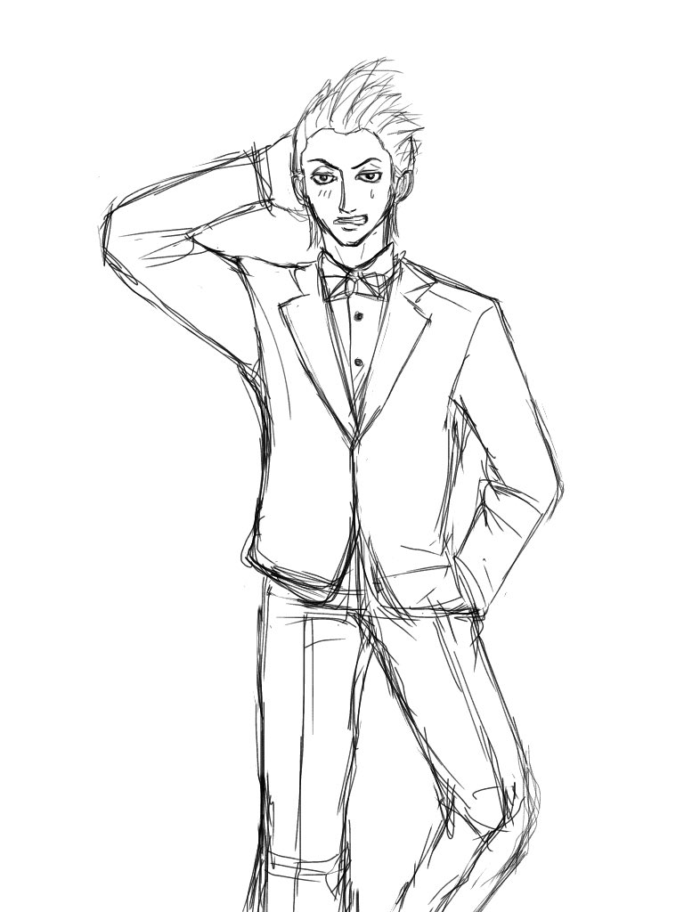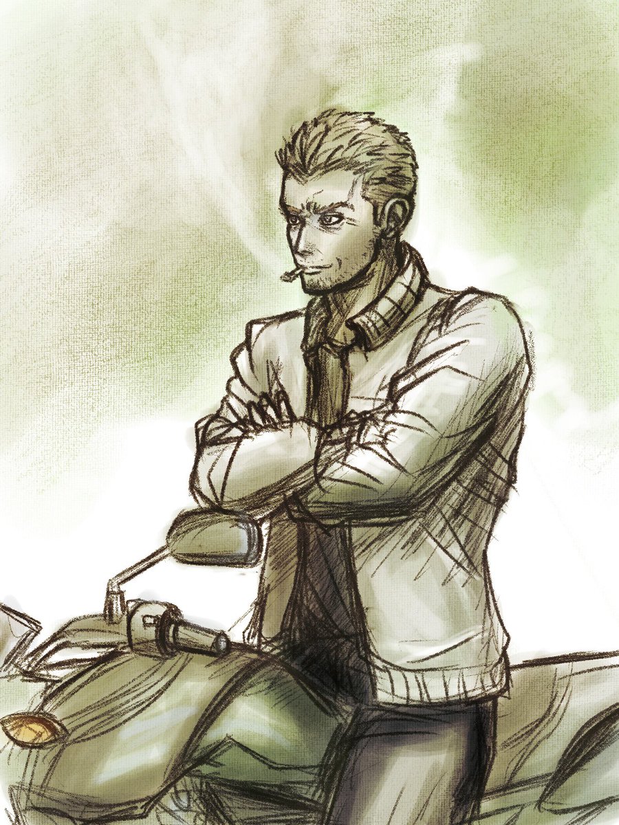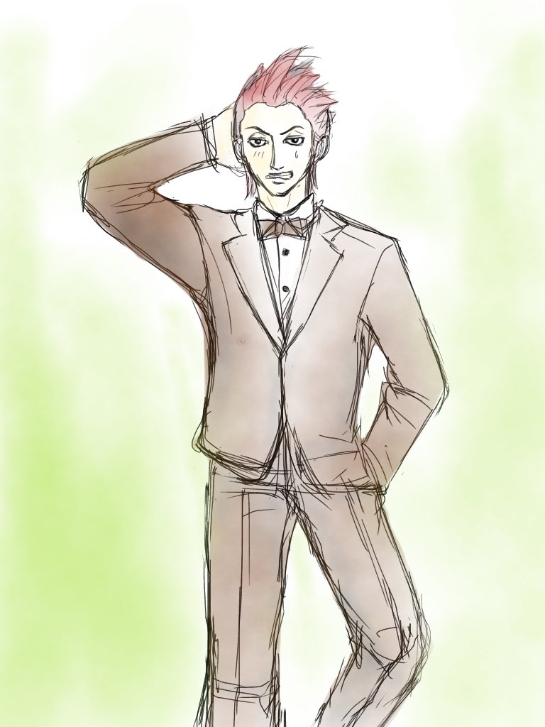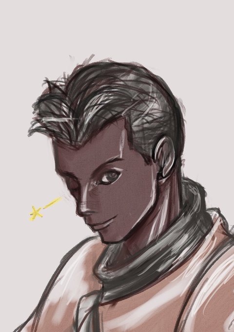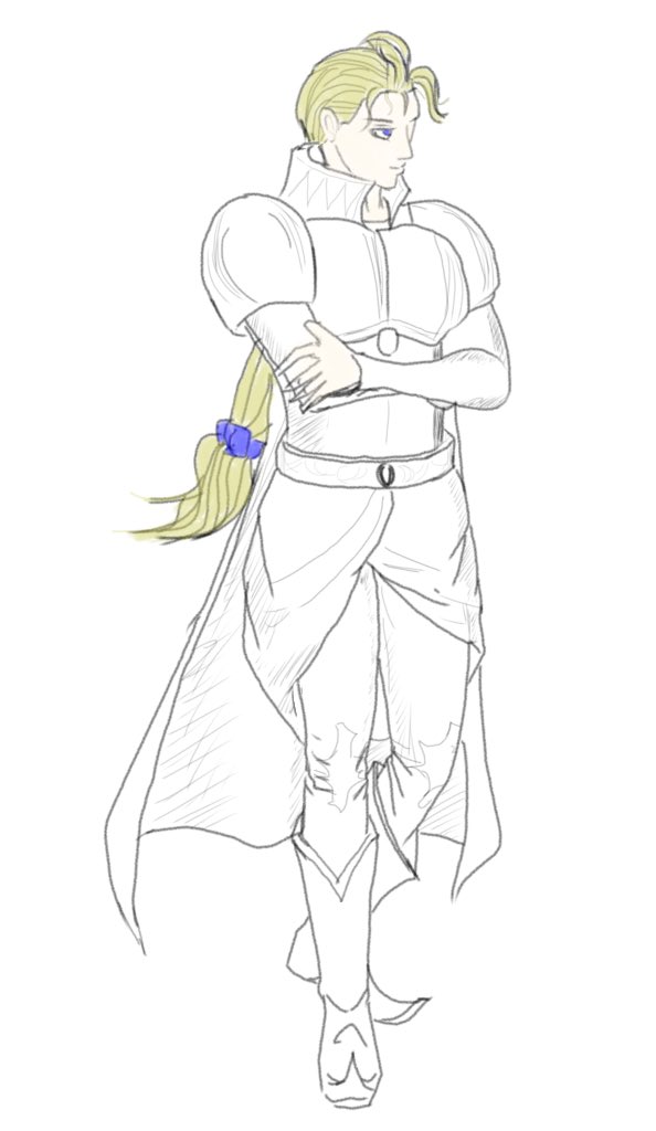 #30日お絵描きチャレンジ day10"正装×はにかみ"(もうほぼオリジナルじゃん)ブランク 60分で描けた所までしか描かぬ!!!と決めて描きました…!顔の傷描けず、背景と足が概念だけど意外と頑張れた。これに手があったら途端に時間食うんだよな〜 #FF9 #絵描きさんと繫がりたい #アイビスペイント