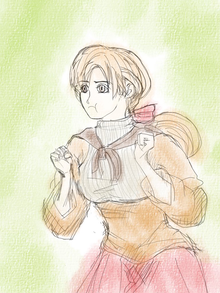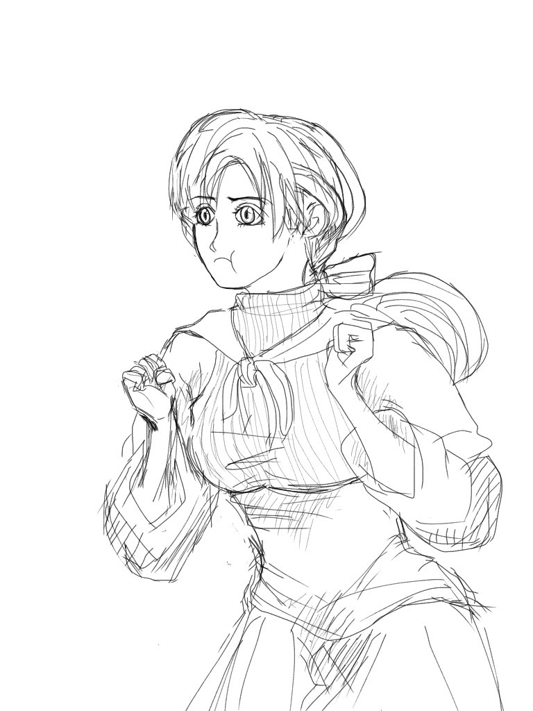 #30日お絵描きチャレンジ 4day"膨れっ面"アルマ アルマたん、思ってたより難しくて誰?状態😇髪の毛も服も高難度でした… 膨れっ面、いつもの絵柄だと大変な事になりそうなので少女漫画っぽくしてみた アルマたんはずっと天真爛漫でいてください…HBD!そして服めっちゃ好み #FFT #アイビスペイント