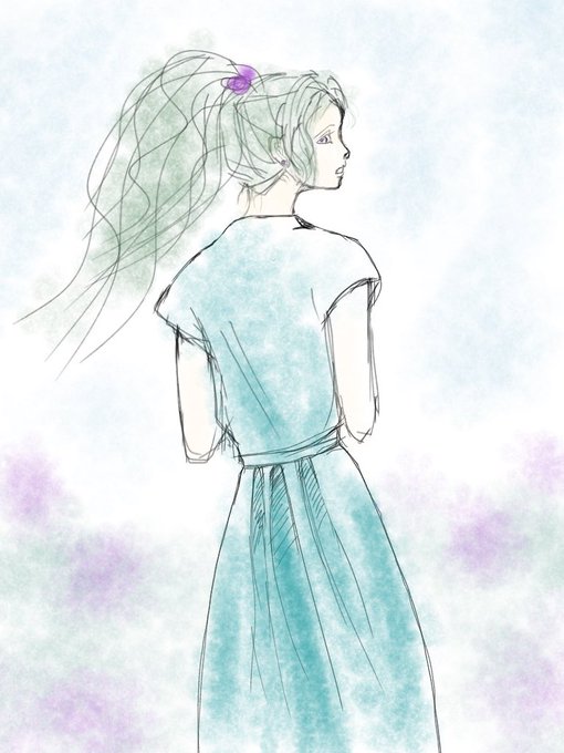 #30日お絵描きチャレンジ 5day"本日のカラーパレット"紫陽花を見てたティナたん 今日のお題無理ゲーだった😇いい加減色塗りちゃんと勉強せんとね…うーん腰が細すぎたかな?🤔そして相変わらず線がきちゃない #FF6 #絵描きさんと繫がりたい #アイビスペイント