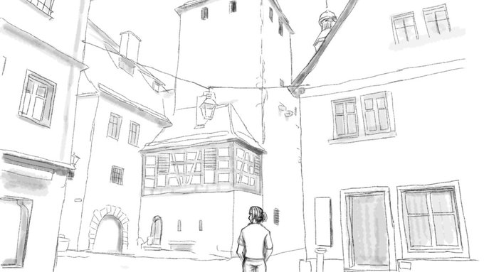 トレスで背景練習してみた!線ガタガタだけどこういう雰囲気ということにしたい😂これから背景と人物の練習(パースとかアイレベルの練習?)したいな〜真ん中の人はよく見るとロック。これにキャラクター増やしていくのも練習になるかも #アイビスペイント #お絵描き好きさんと繋がりたい