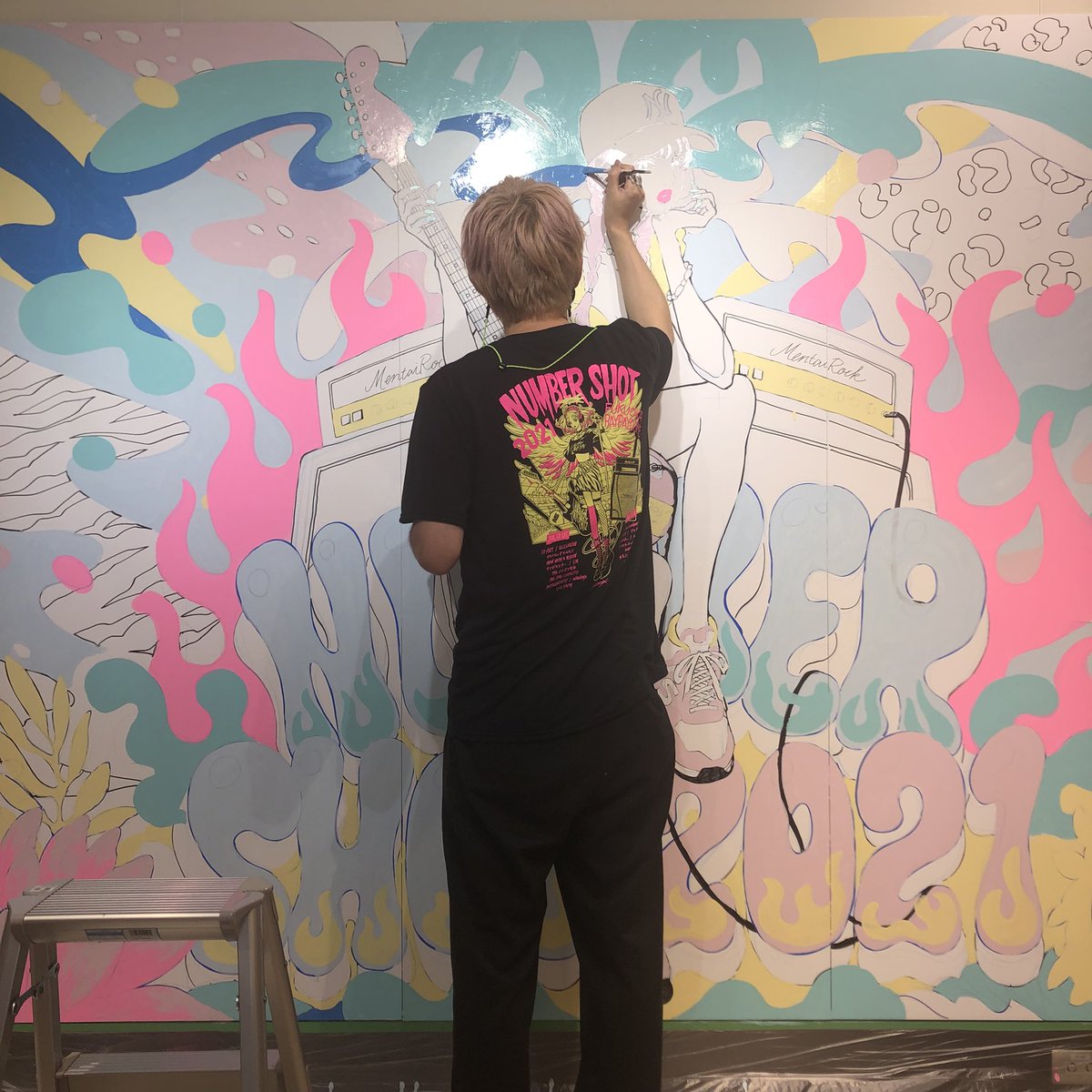 isayamaxさん(@naoya_man)の ライブペイント観てきました✨✨ 迫力めっちゃ凄い🔥✨ さりげなくステッカーGET✨ #撮影OK #イラストレーター #numbershot2021