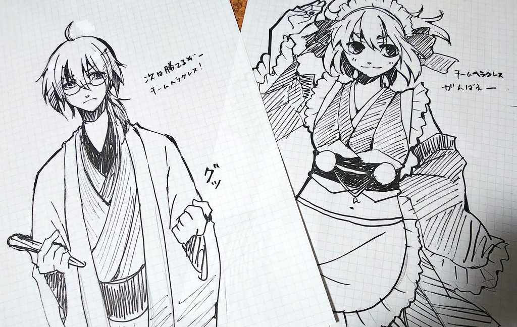 @0 今週末の師弟対決楽しみにしてますという気持ちを、とりあえず急いでしたためました(ほんとか?) 怒られそうなら消しますので、万が一やらかしてたらどなたかそっと教えて下さい。。。 #黒乃の巣 #かもあーと #ピク渋 #ぶぎぼのえ