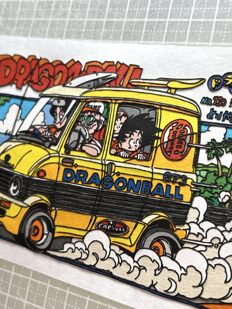 「天津飯 あせる!」 #切り絵 #ドラゴンボール #dragonball 一ヶ月半かけてようやく完成しました😂✨ 車・人物・ロゴ・文字・背景と全ての要素が詰まりまくった作品になりました! サブタイとイラストのイメージが全然違うのも扉絵作品の醍醐味ですね😊