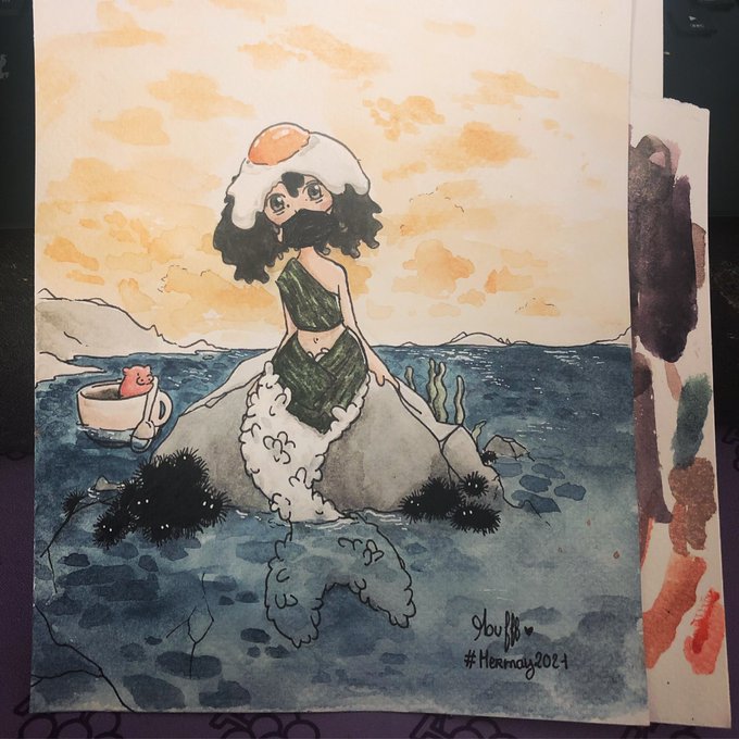 Day 5 : Lunch Break Une goutte d’encre a fait que la sirène a reçu un masque x). #mermay #mermay2021 #mermaychallenge