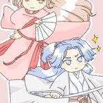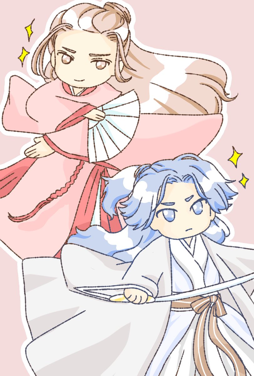 19 79 剣舞と扇舞だ!と思って書いたものの…いつもこんなポーズしてるよなぁこの二人…と…不安になってきました…。これ、お題に沿ってます??大丈夫…??? #四季の山ドロライ 23/03/05 17:03