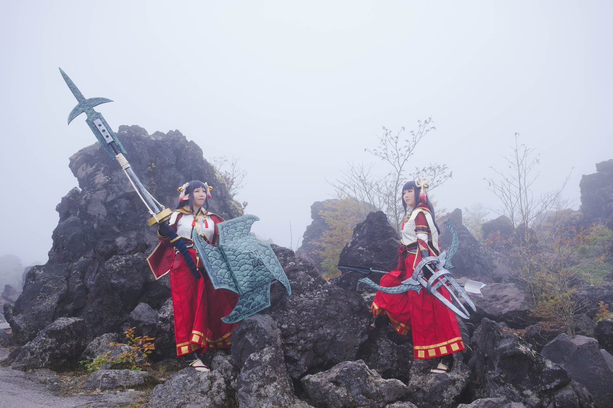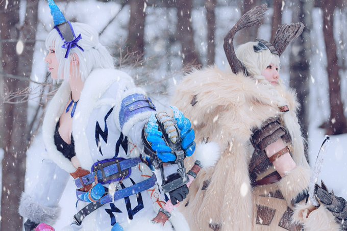 Monster Hunter RISE ヒノエ:琥珀 ミノト:かずはちゃん(@kazuhacos ) Photo:憲伸さん(@kenshin_abnz ) サンライズやっとできる✨嬉しい💕 #monsterhuntercosplay