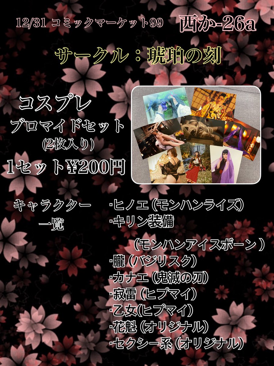 あなたのサークル「琥珀の刻」は、コミックマーケット99で「金曜日西地区 "か " 26a」に配置されました! C99当選してました✨嬉しい!! いつもの花魁の写真集と間に合えば新刊を検討中! どうぞよろしくお願いいたします✨ #C99 #コミックマーケット99