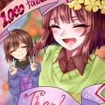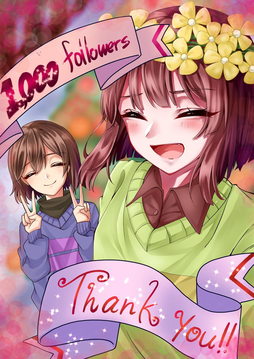 フォロワー1000人記念絵です!! いつも見てくださりありがとうございます!!これからも画力が上がるように頑張ります!!とりあえずcharaちゃんは私の嫁です。 #undertale