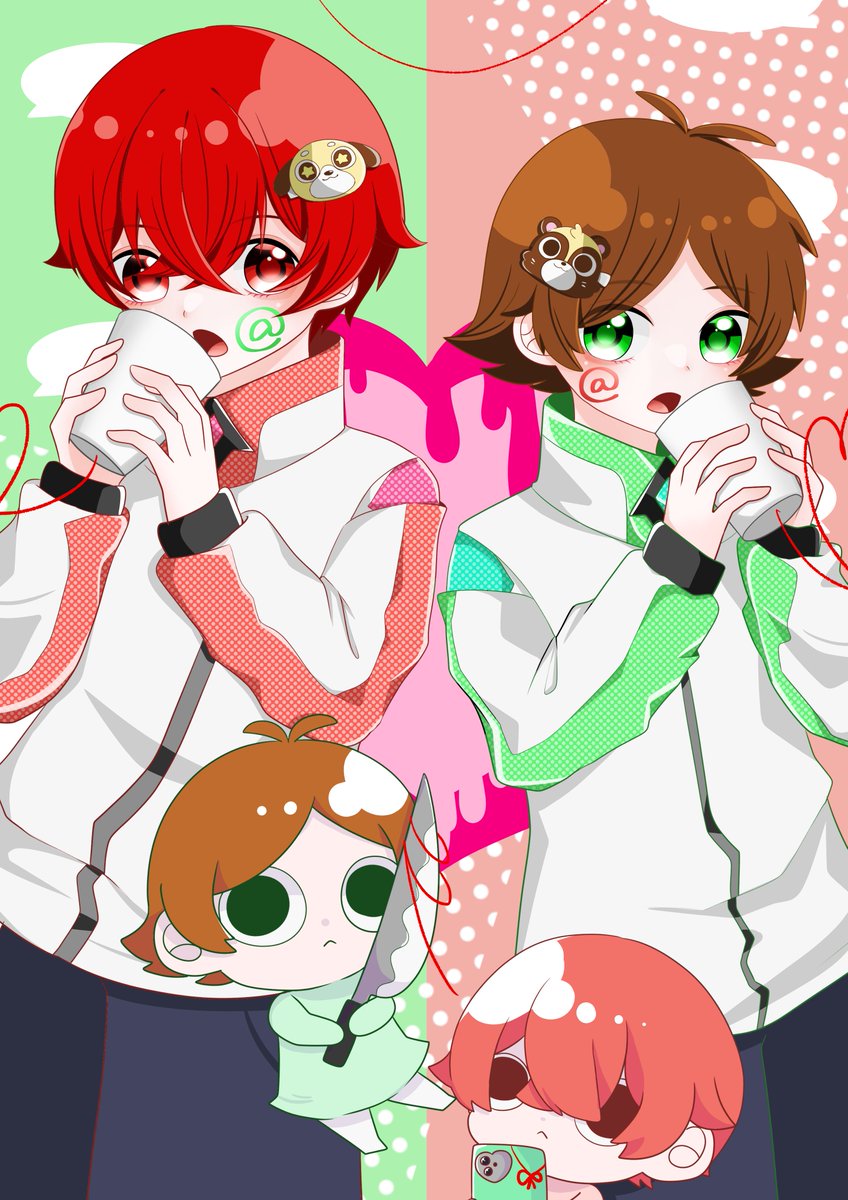 ねぇねぇねぇ / うらたぬき・となりの坂田 💚 片方を選べない感じ? ❤️ #うらたぬ王国の美術館 #坂田です
