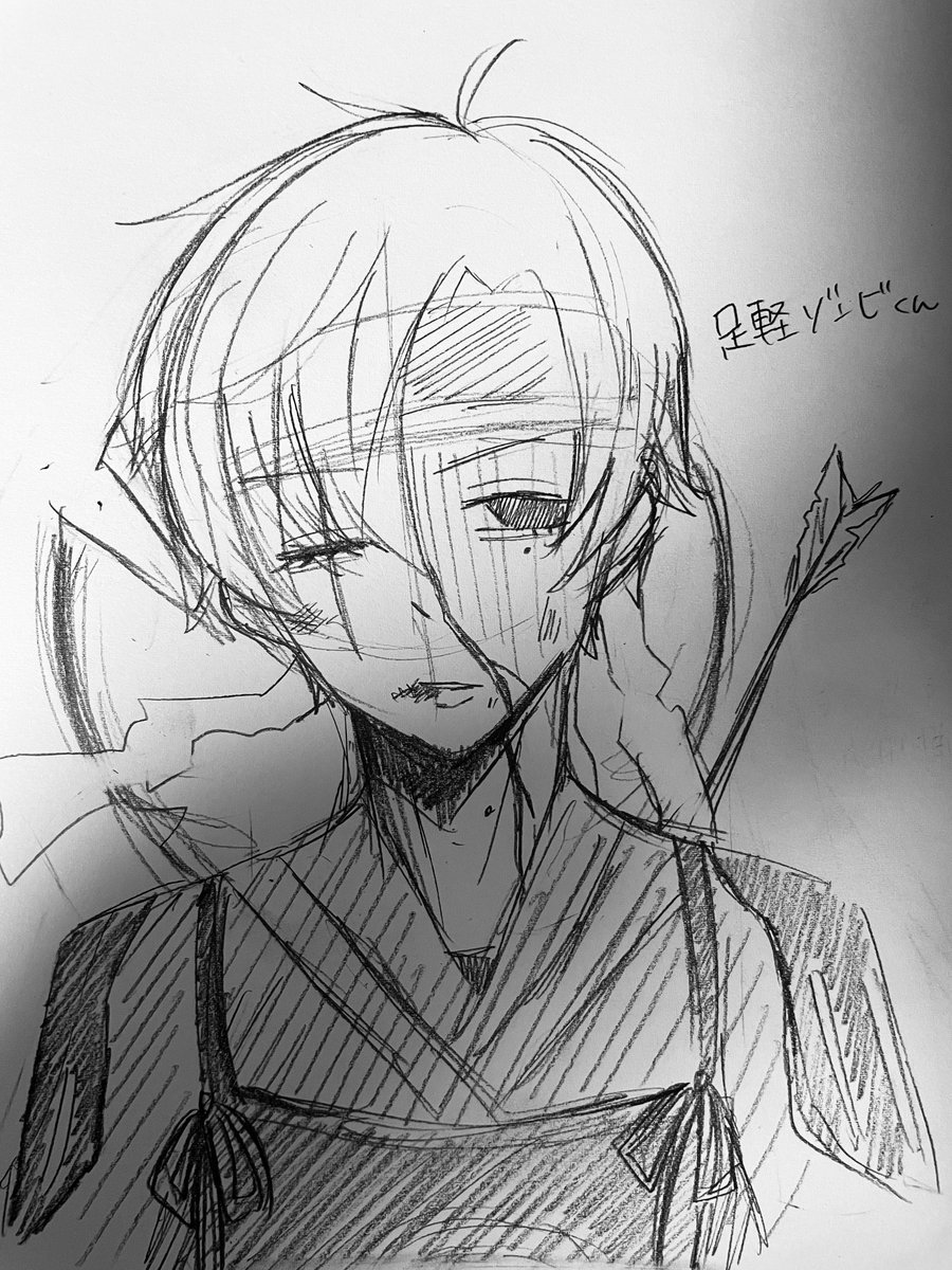 デジタル間に合わなさそうだったのでザザっと描いたアナログ足軽くん🧟♂️ #しまーと