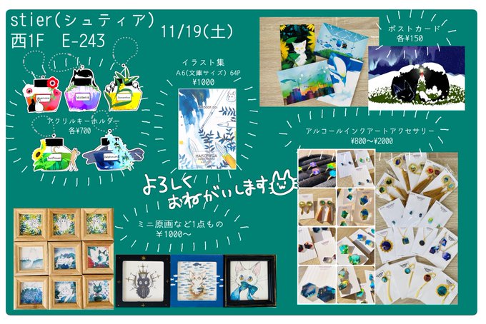 万年筆インクイラストメインでポストカードやアクリルキーホルダー、イラスト集持っていきます! アルコールインクアートのアクセサリーも作ってます! 11/19土曜日のみの出展です✨ よろしくお願いします! #デザフェス56 #デザフェスお品書き #アルコールインクアート #インク沼