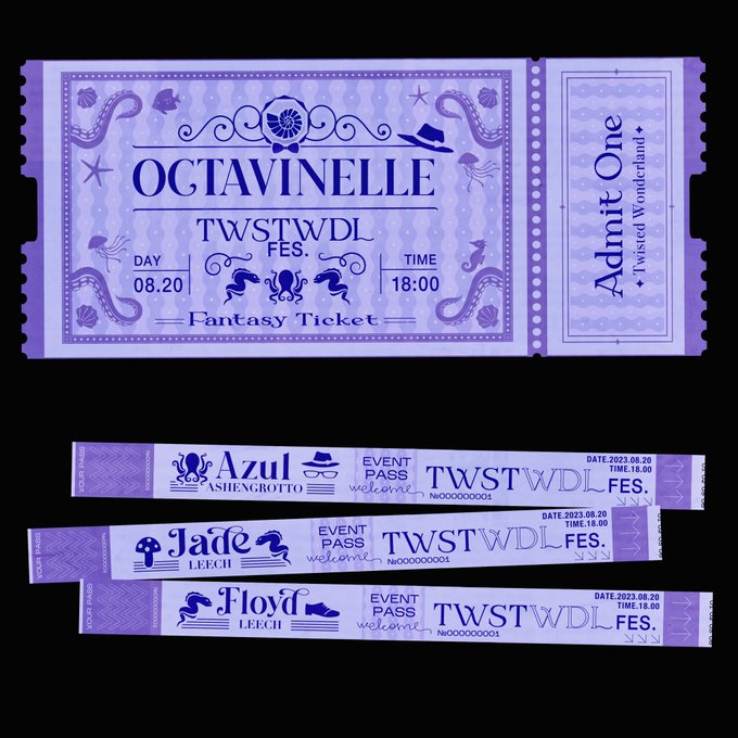171 1054 妄想 ツイステフェス チケット&リストバンド オクタヴィネル推し用🐬🐙🦈 #ツイステファンアート #twstファンアート 23/08/13 19:08