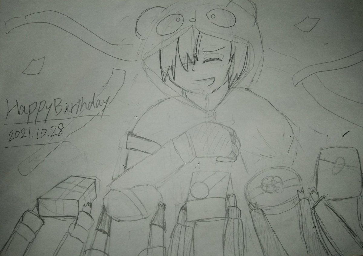 #コンタミの誕生日研究所2021 #コンてすと お誕生日おめでとうございます🎉 雑ですがアナログでイラスト書かせていただきました。 これからも応援しています あ、背景だけデジタルなのは内緒で…… (2枚目は背景塗る前のやつです。おまけということで、一緒に投げときました)