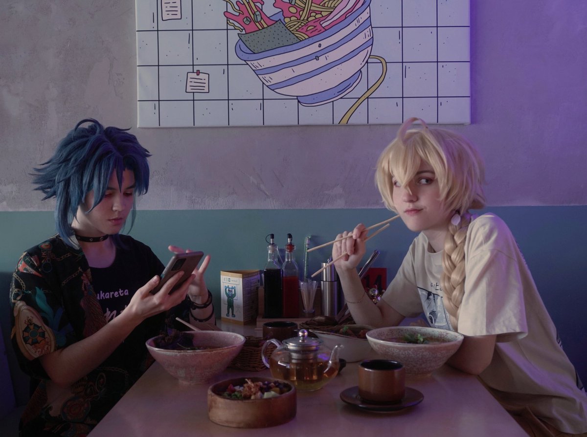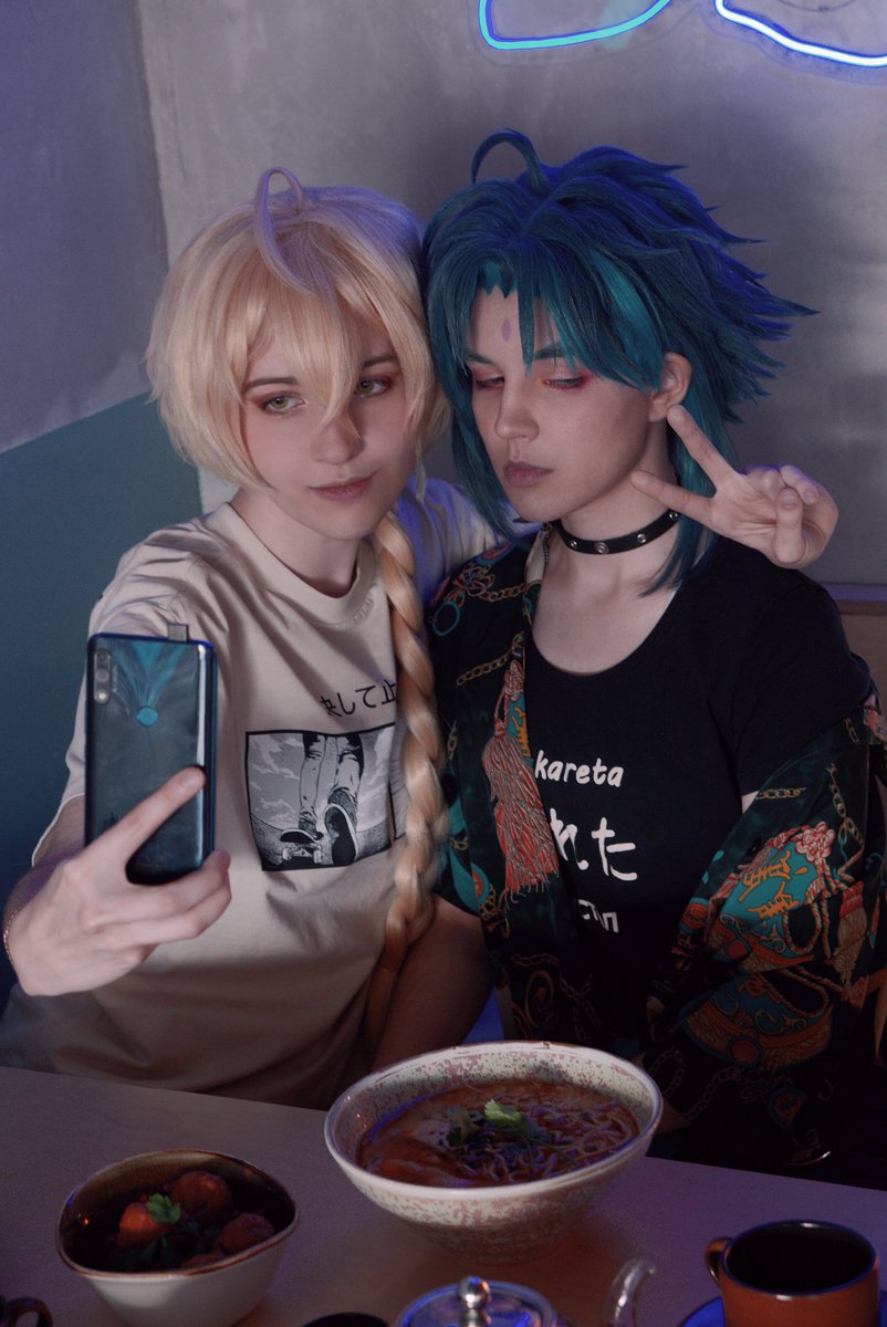 Modern AU 🍥⠀ In the restaurant Aether wants to take a selfie, but Xiao is more interesting... taking pictures of tofu Xiao @a_andryushin_a Aether @shmeletc 📸 @_plinchus_ #genshinimpact #genshinimpactcosplay #cosplay #aether #xiao #XiaoAether #原神