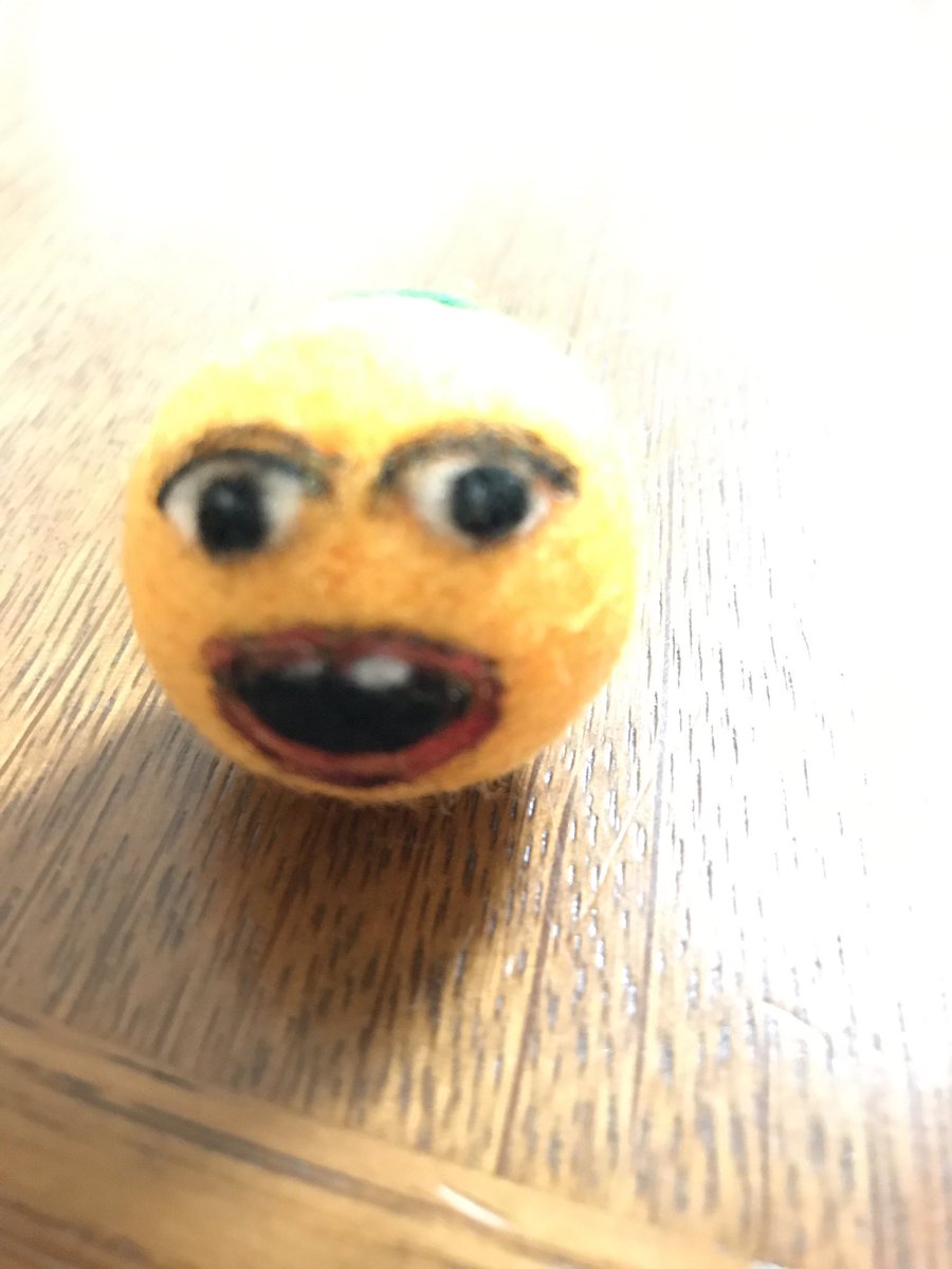 3 18 かなりいい感じの不気味さが出せたと思うのです(笑) Uピンを付けてあの方の髪にこっそり挿しました。 #羊毛フェルト #うざいオレンジ #須坂太郎博士 19/03/25 13:35