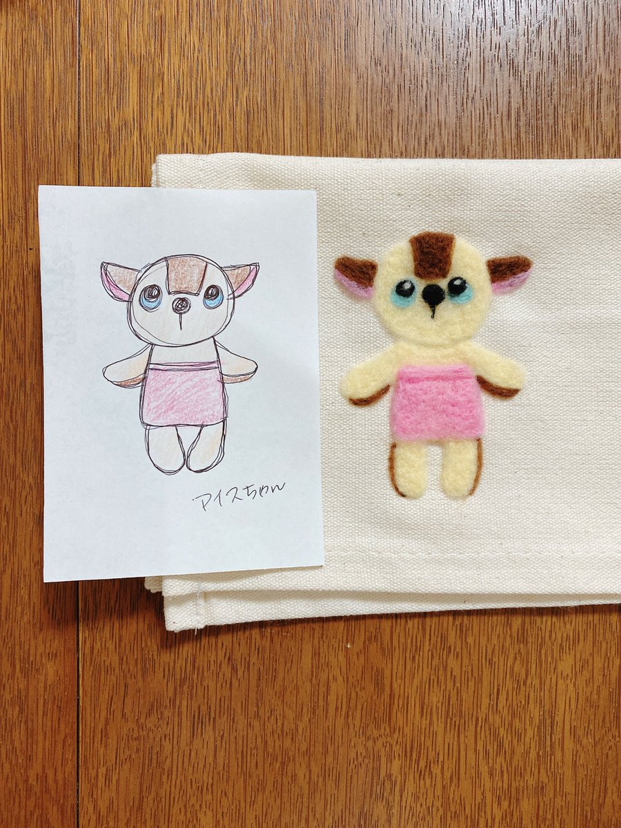 3 19 ランチョンマットに刺してみた。 目の位置が全然違った💦 #ターナーさん #羊毛フェルト 23/06/13 02:02