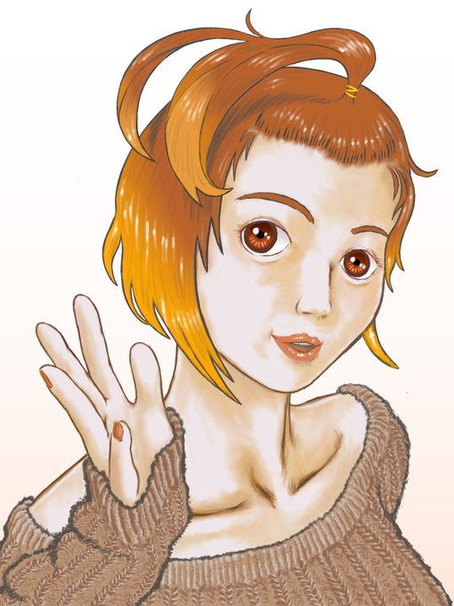 Gooseneck Bangs Girl 改 主な変更 ・前髪の生え際 ・髪描写の抽象度 ・色調をブラウン系に統一 #ibispaint #絵描きさんと繋がりたい