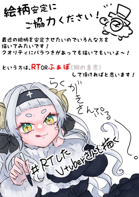 #RTしたVtuberさんを描く 画像を参照に募集してます…! !クオリティにばらつきがあっても構わない方🙇♂️ !リプに三面図等いただければ幸いです!🙏 !フォローはどちらでも🐏 どれくらい来るかわかりませんが多かった場合はフォロワーさんとビビ!っと来た方優先に描かせていただきます…!🙇♂️