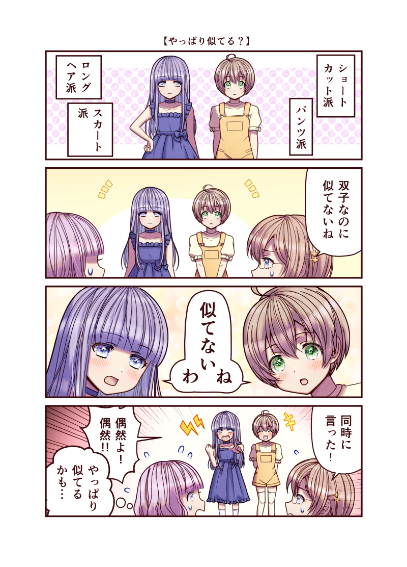 0 6 ふたりは似てないツインズ!4話 #漫画 #創作 #創作漫画 #双子 #姉妹 #4コマ漫画 #漫画が読めるハッシュタグ #4コマ pixiv.net/artworks/93699… 21/10/26 19:28