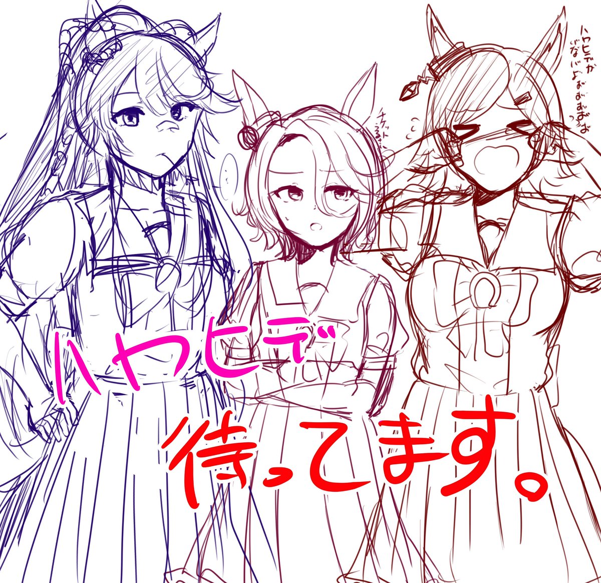 今年の描き初めはハヤヒデ、ブライアンとチケゾー、タイシンの四人です!(楽しくかけたけど出遅れた…) 今年も頑張って描けたらいいなと思っているのでよろしくお願いします! #ウマ娘 #ウマ娘プリティーダービー