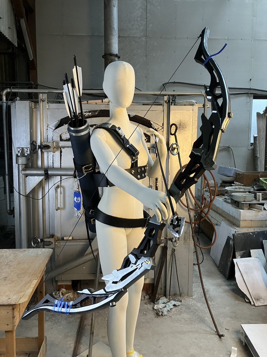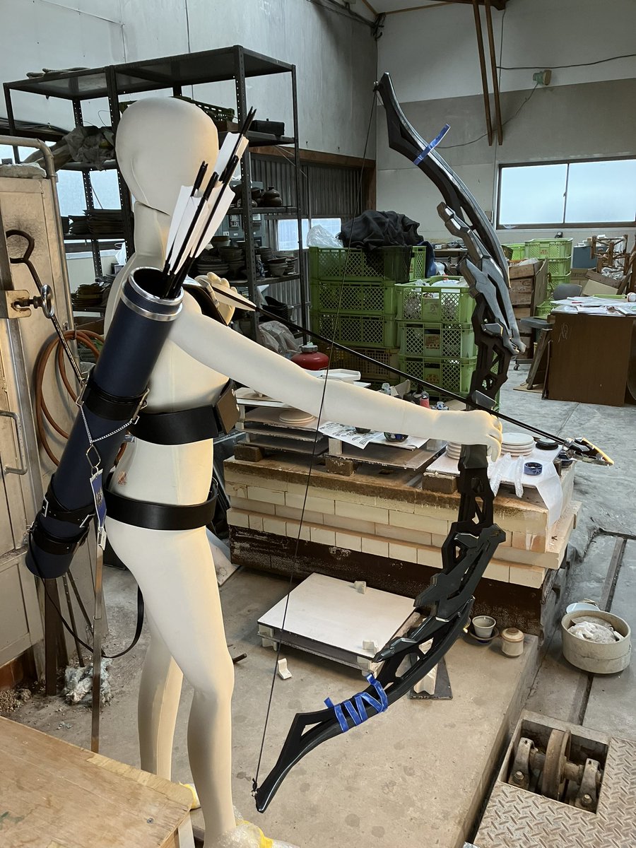 12 33 トワツガイ フクロウの弓矢、矢筒、矢、作りました。 制作時間3日ほど(実際は材料待ちでかなり完成まで間が空いてしまった…) 弓のデザイン、カッコいいですの。 23/05/09 12:40