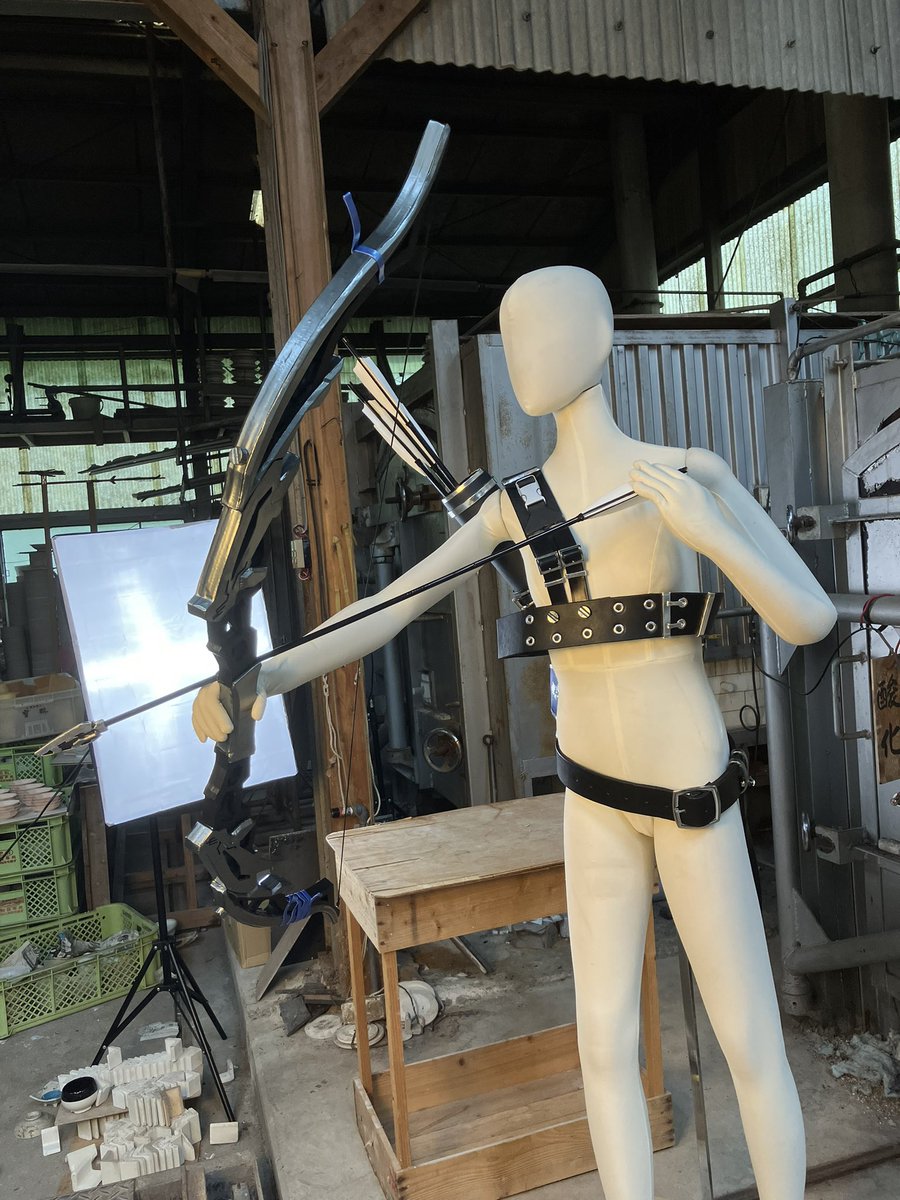 トワツガイ フクロウの弓矢、矢筒、矢、作りました。 制作時間3日ほど(実際は材料待ちでかなり完成まで間が空いてしまった…) 弓のデザイン、カッコいいですの。