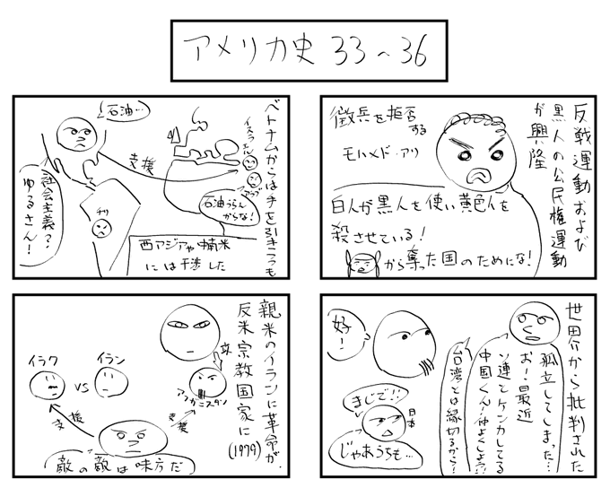 1 0 世界史4コマ ざっくりアメリカ史「ベトナム戦争~イラン革命」 #4コマ #世界史 #漫画が読めるハッシュタグ 23/04/03 09:36