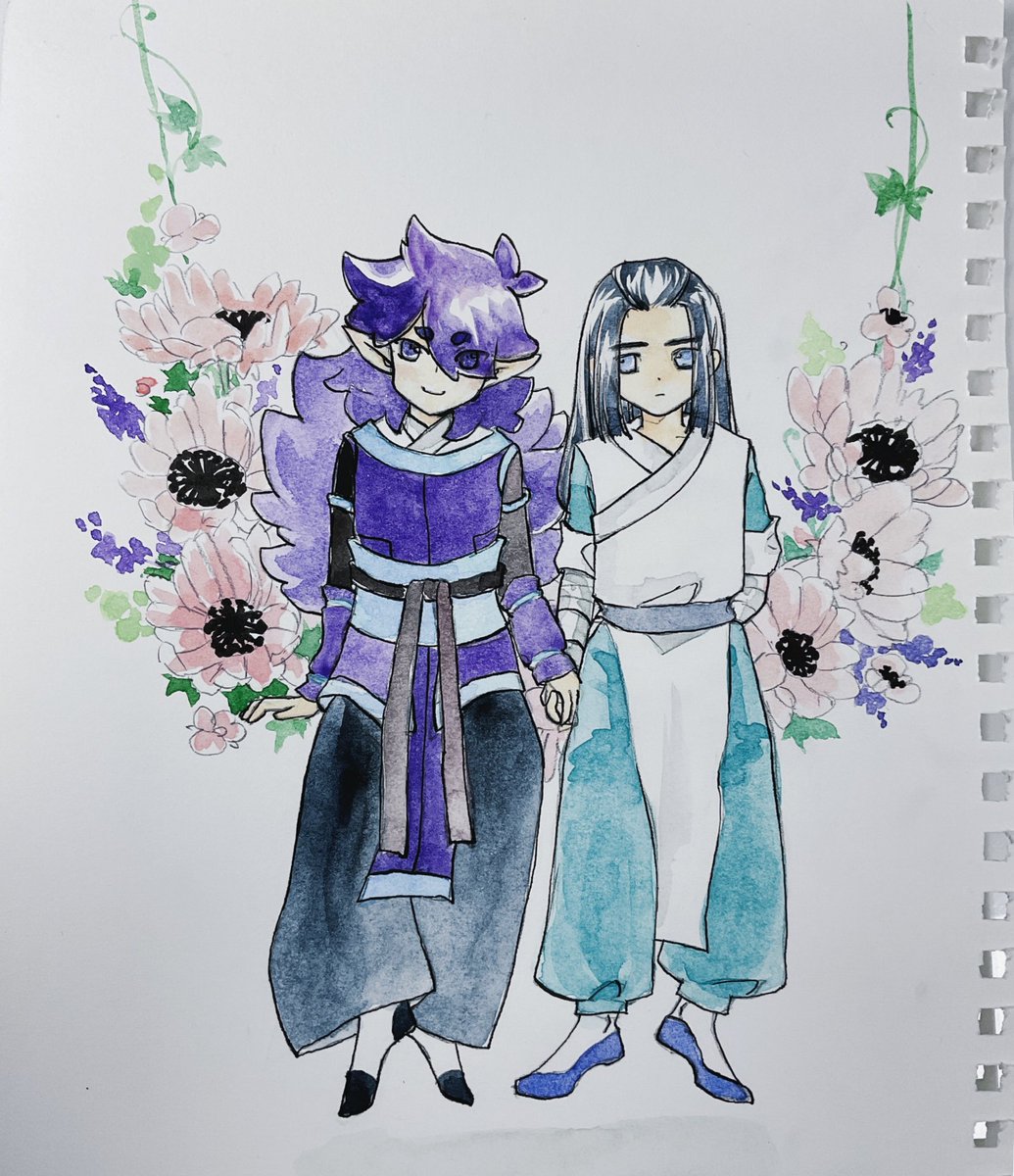 #LXHシャッフル大会 ほうらいさん@lee_sec1201 の線画を透明水彩で塗らせて頂きました♪楽しかった🥰🥰🥰なにがしさん素敵な企画ありがとうございます💜 twitter.com/lee_sec1201/st…