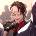 糸廻輪廻が大笑いしてるとこを見たい!!侍。 #コンパスお絵描き #黒髪スーツメガネで独占欲が強い天然人懐っこい変態であみぐるみ作りが趣味の極悪非道の若頭